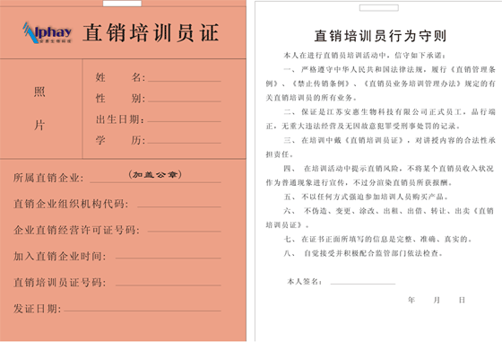 您現在的位置 >> 直銷信息披露 >>直銷培訓員證樣本